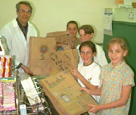 In order to promote environmental awareness, Huntington Intermediate School, in Huntington, New York, recently held a Pollution Solution Fair. As their contribution to the fair, the students in the fifth grade classes of Ms. Bartsch, Mrs. Ricco, Mrs. Regan and Miss Von Vange participated in the Earth Day Groceries Project 1998.